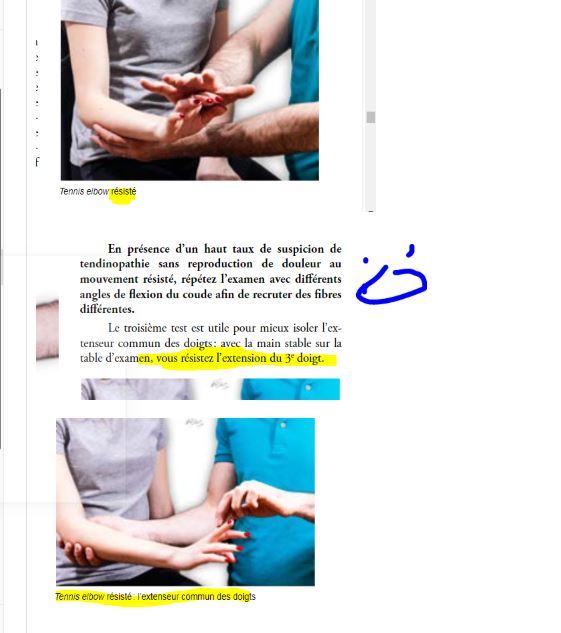dans le tennis elbow resisté , quel tests que tu veux faire?