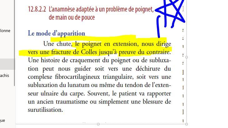 v/f une dlr en flexion active du poignet fitte avec le Dx de lésion des fléchisseurs