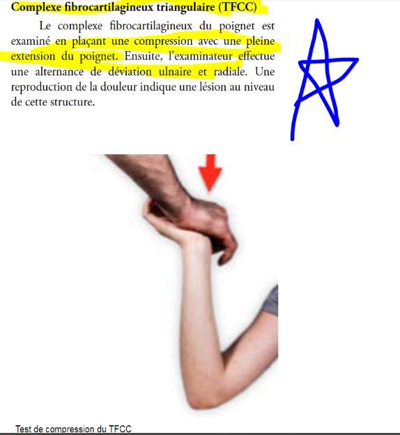 quel test devrait tu faire si tu suspecte lésion au complexe fibrocartilagineux triangulaire?