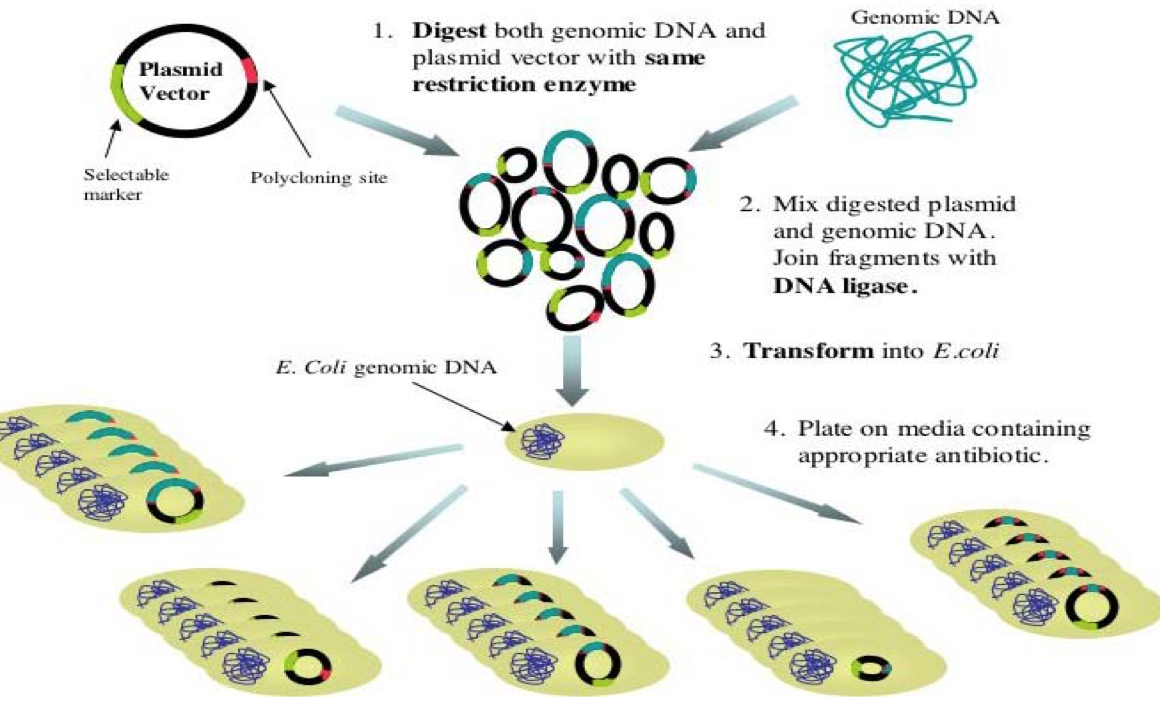 Describe the process of cloning a DNA librabry in a plasmid vector