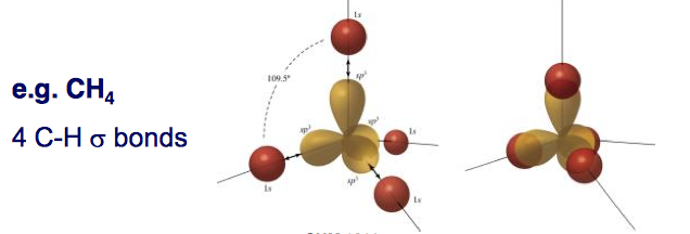 Again, note how the energy of the four hybrid orbtals is an average of the energy of the four atomic orbitals used.
