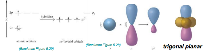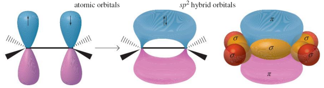Combinging the Px, Py and S atomic orbitals generates three, 3-fold SP2 hybrid orbitals.