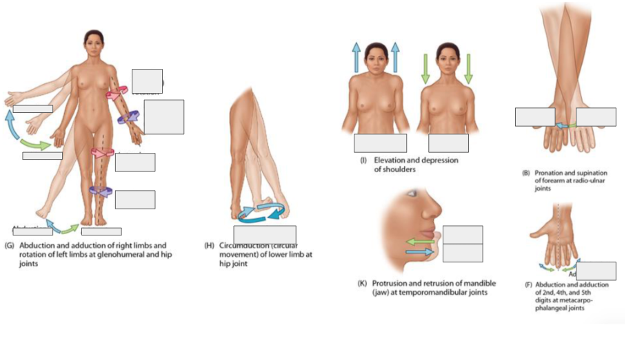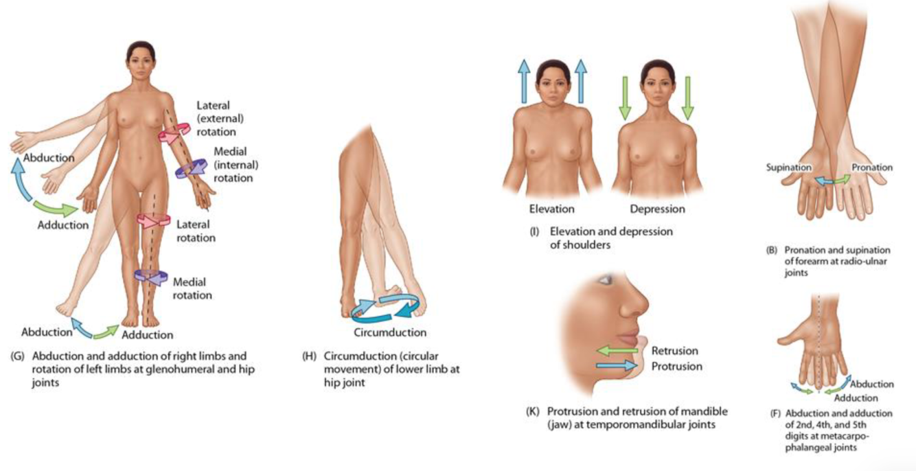 Abduction: moving the body part away from the median plane