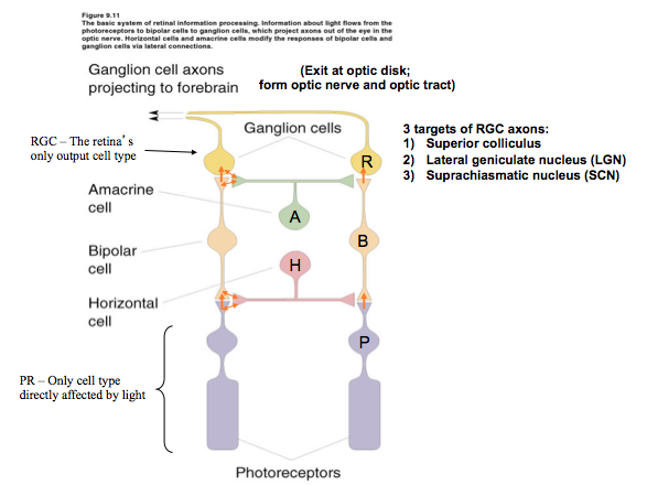 b. RGCs are the only means by which information from the eye gets to the rest of the