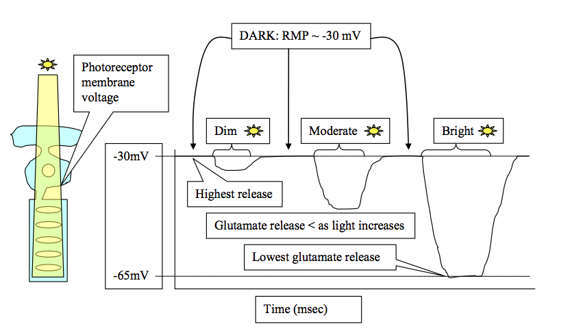 Below is a diagram depicting how light changes photoreceptor membrane potential.