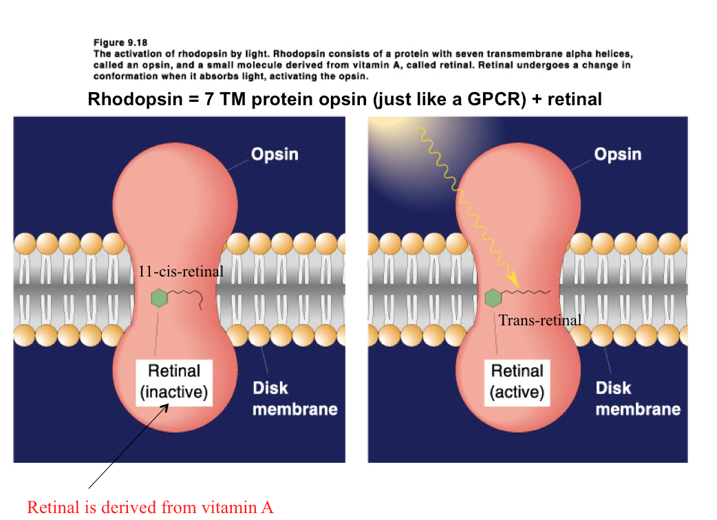 2) A photon of light will switch it to the all trans-retinal conformation.