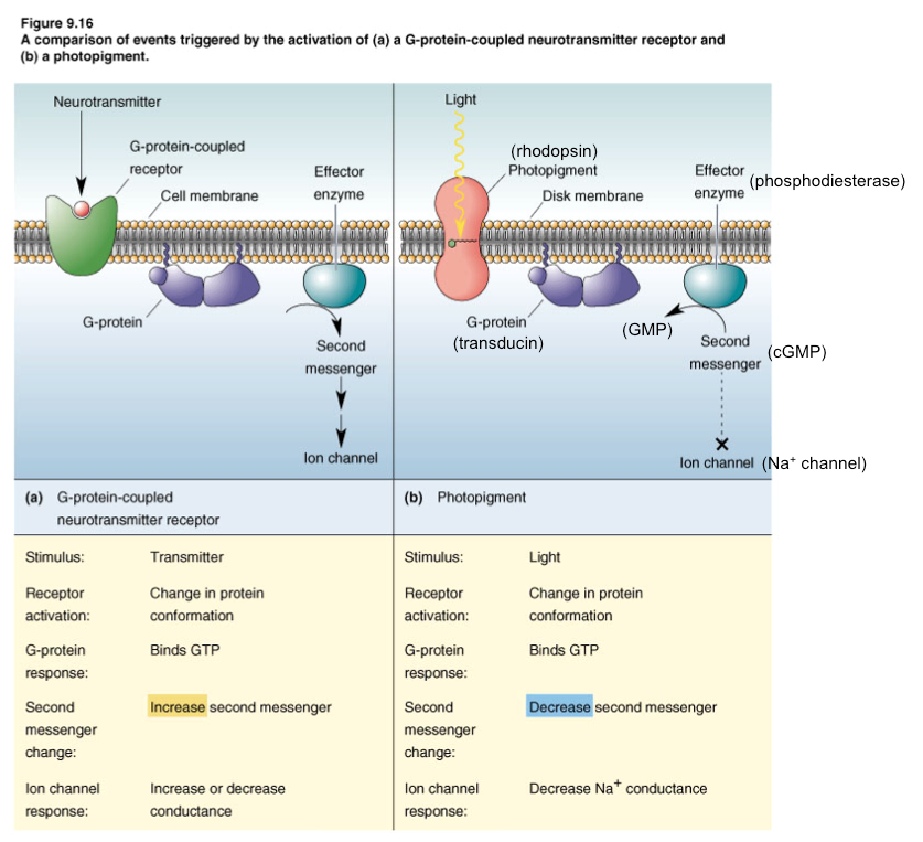 A comparison of events triggered by G-protein-neurotransmitter receptor and photopigment