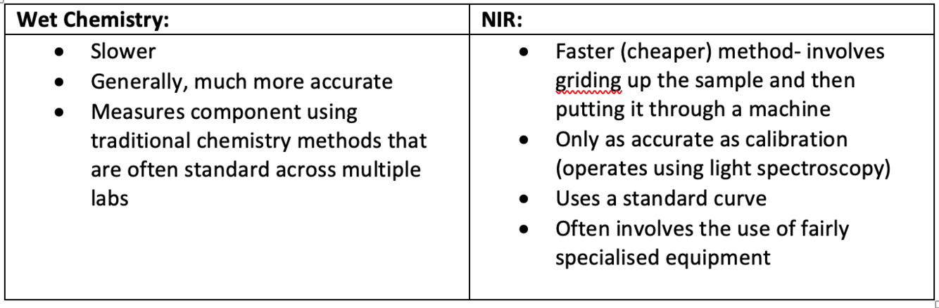 feed constituents portioned into broad chemical grouping and can be conducted either by wet chemistry/NIR