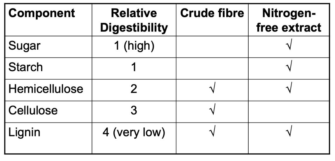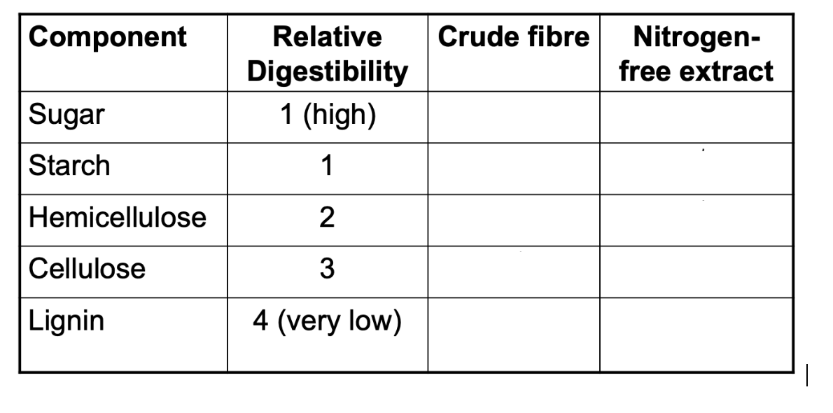 NFE = 100% - (% moisture + % crude protein + % crude fat + % ash + % crude fibre)