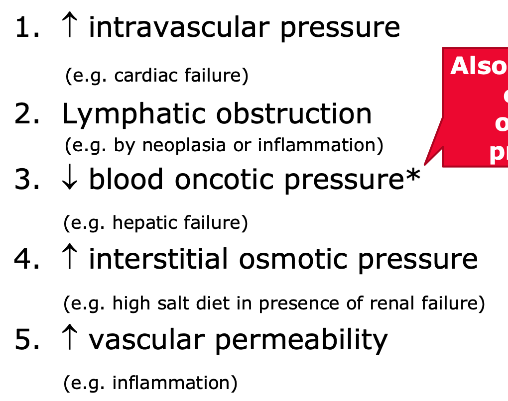 Oedema and effusion. This causes fluid within the body cavitie. Called Oedema if it is flowing into the tissue matrix. If it is into a body cavity its effusion