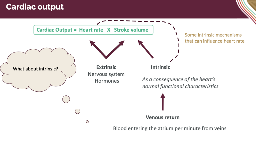 As a consequence of the heart’s normal functional characteristics, not dependent on hormones or neural input.