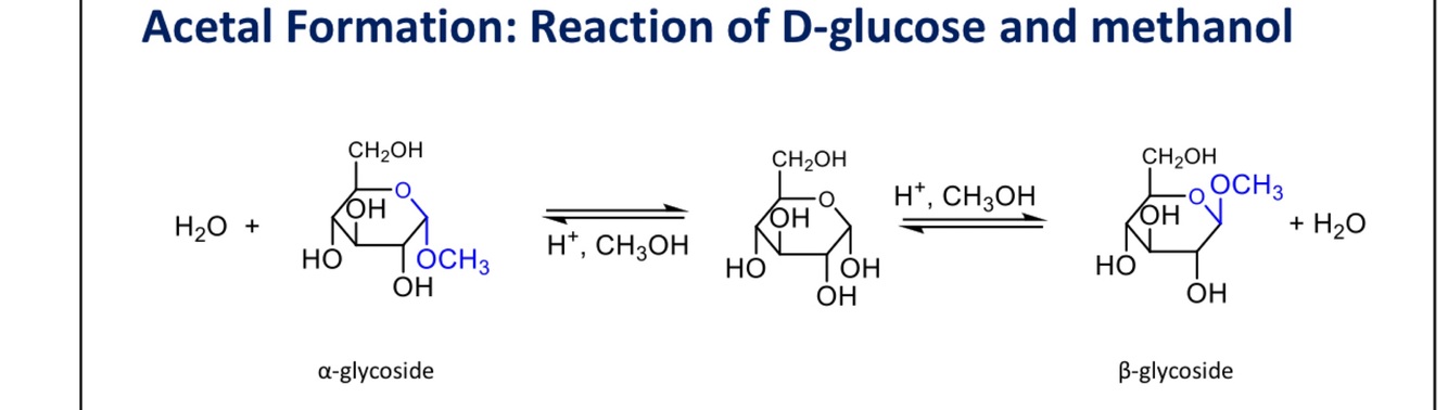 Reaction of D-glucose and methanol to make acetal formation - what is produced