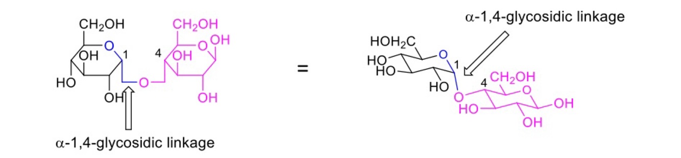The glycosidic bond from c-1 (anomeric carbon) is pointing down while the CH2OH is up, thus an a-1,4-glycosidic linkage