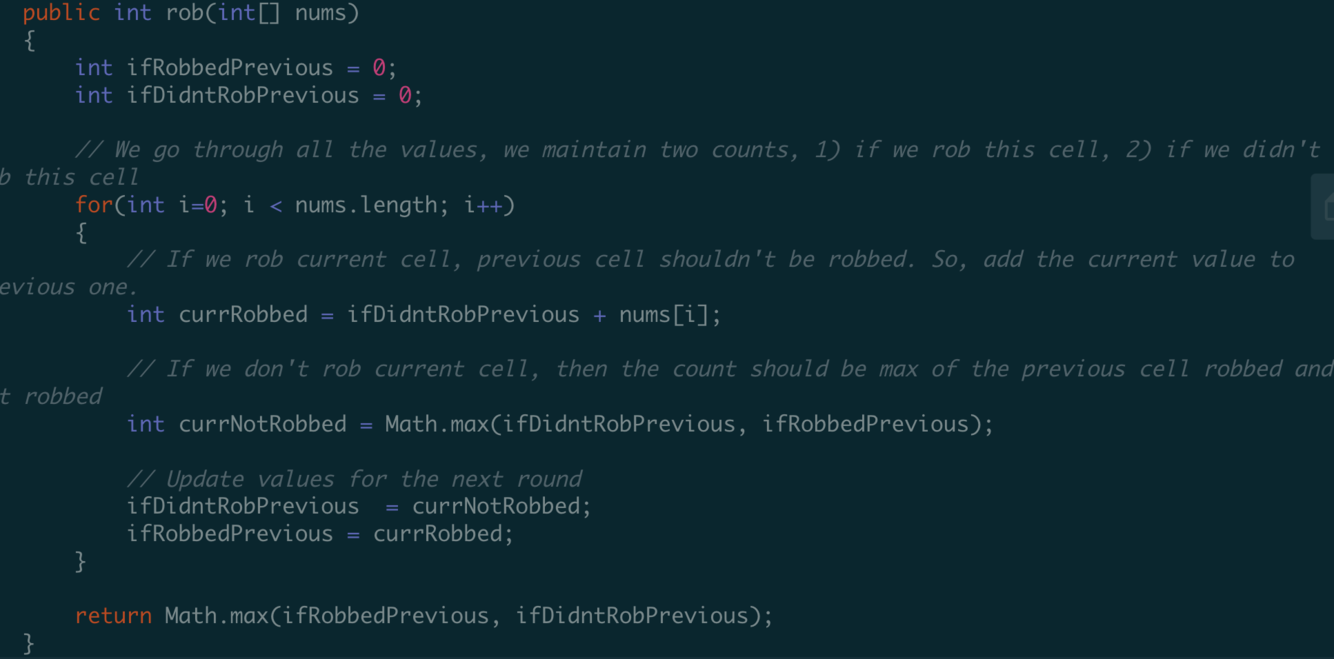 int currNotRobbed = Math.max(ifDidntRobPrevious, ifRobbedPrevious);