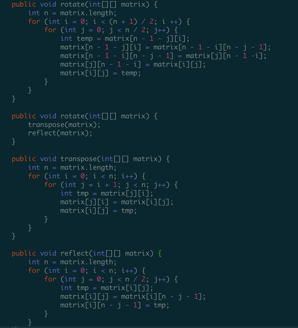 matrix[n - 1 - i][n - j - 1] = matrix[j][n - 1 -i];
