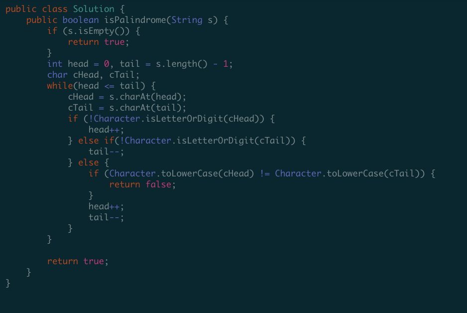 Two points starting at beginning and end, check if both are lower case, if so then check if they’re the same. If not, return false