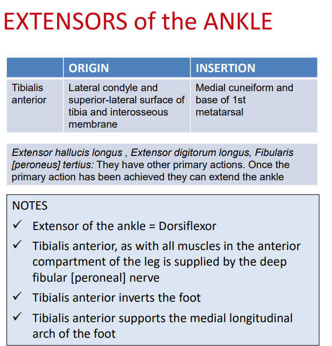 insertion = medial cuneiform and base of 1st metatarsal