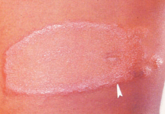 crops of painful erythematous papules that resolve spontaneously in a few days to week but may recur; malise and fever