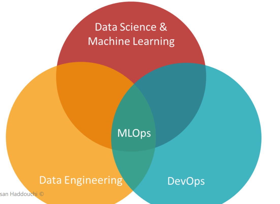 geef visueel de relatie tussen: datascience & machine learning, data engineering, DevOps en MLOps