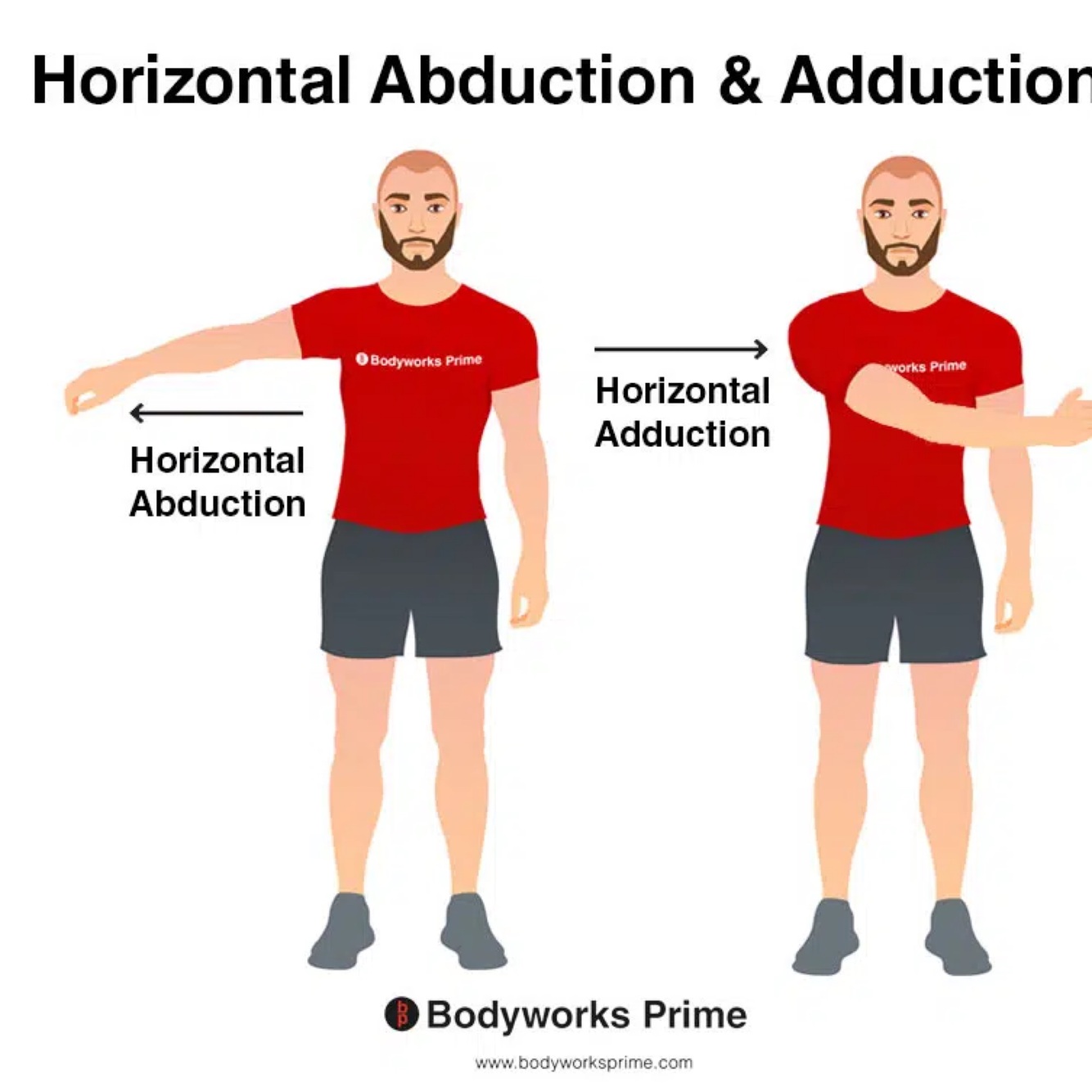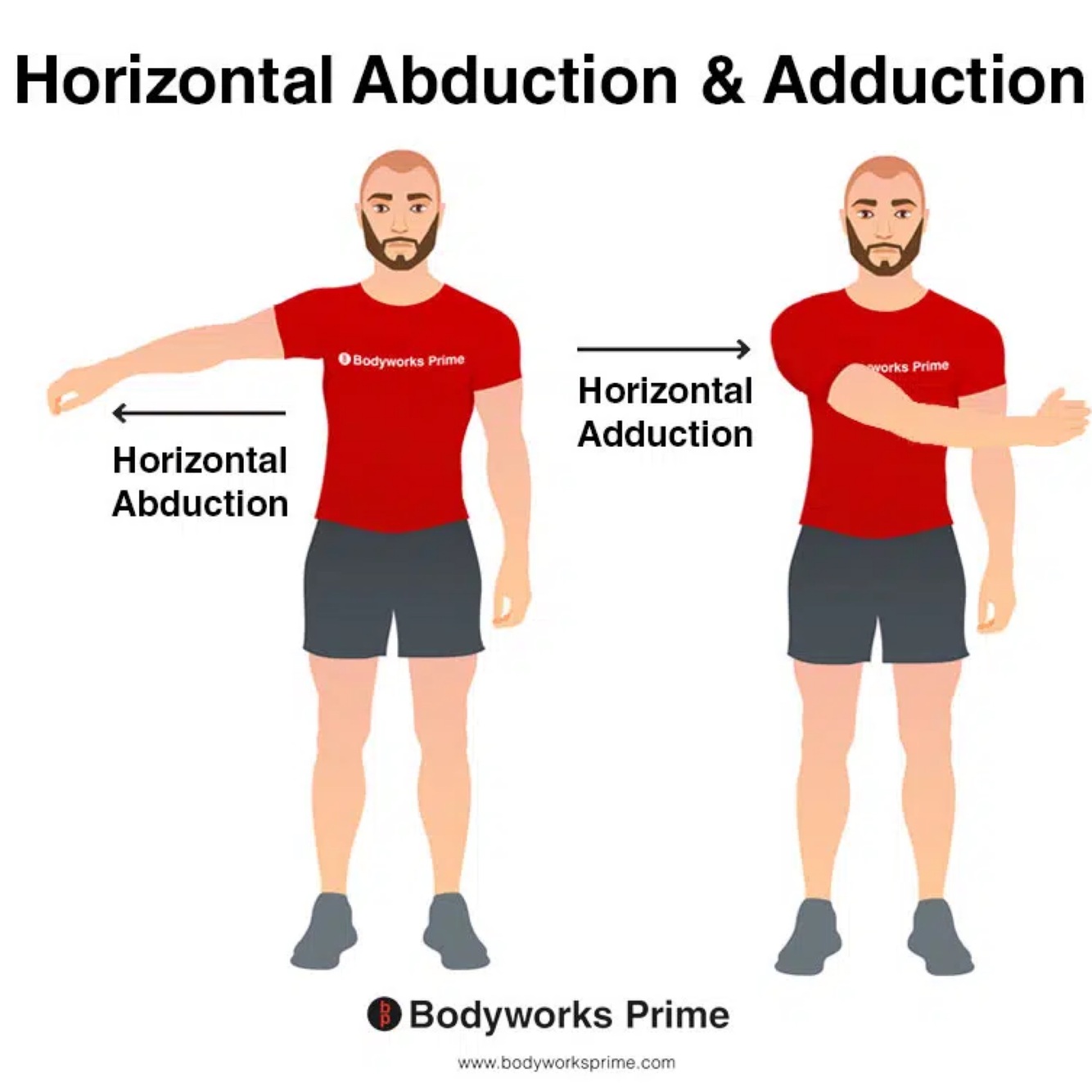 Moving the limb horizontally away from the midline of the body. Example: Moving the arm straight out to the side from a front-facing position.