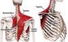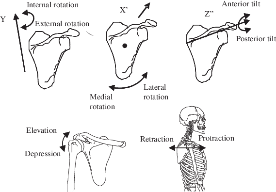 Tilt where the shoulder blade moves away from the rib cage, especially noticeable when the arm is fully extended behind and the shoulder falls forward.