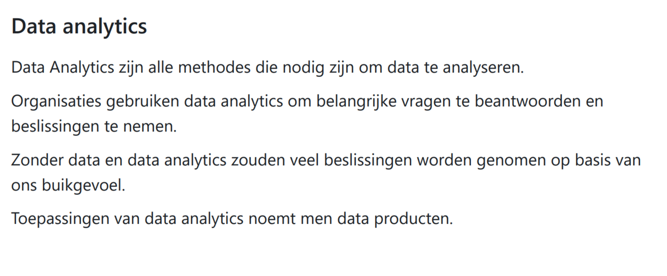 wat zijn data analytics + wat is een toepassing daarop