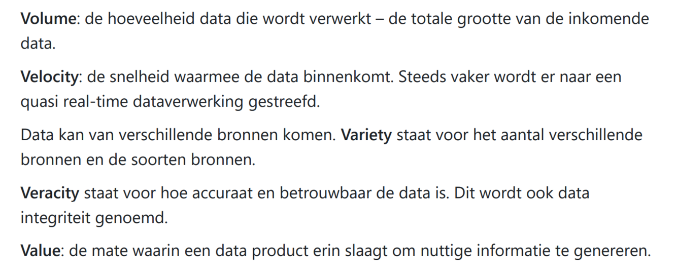 geef nogis de 5 V’s bij data + uitleg