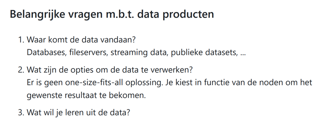 welke 3 belangrijke vragen zijn er met betrekking tot data producten