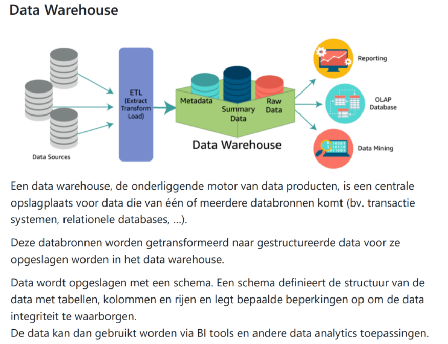 Voorbeelden: databases, een data warehouse of een data lake.