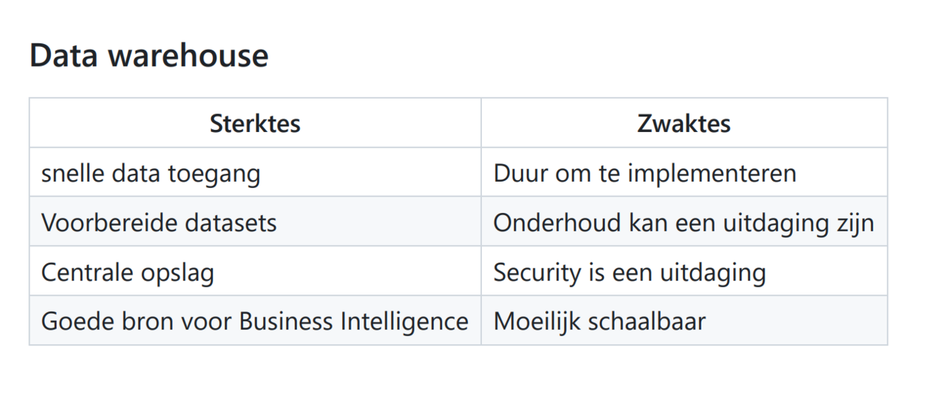 4 sterktes en zwaktes van een data warehouse