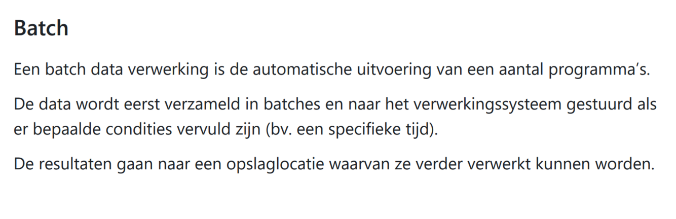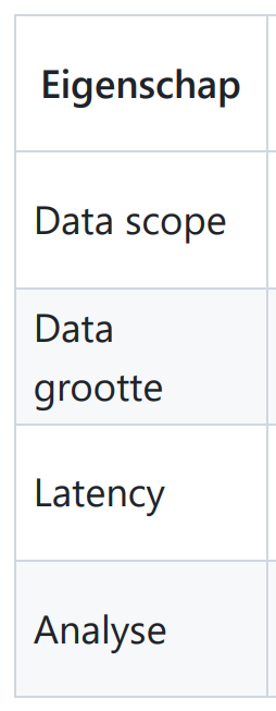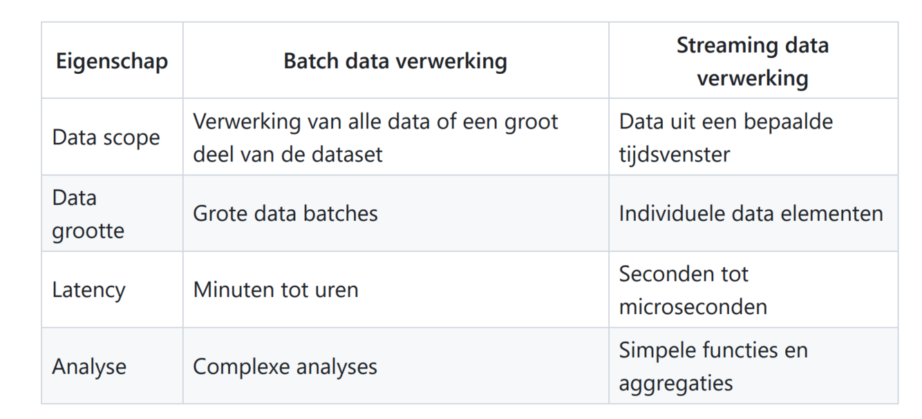 geef deze eigenschappen voor batch en streaming data verwerking