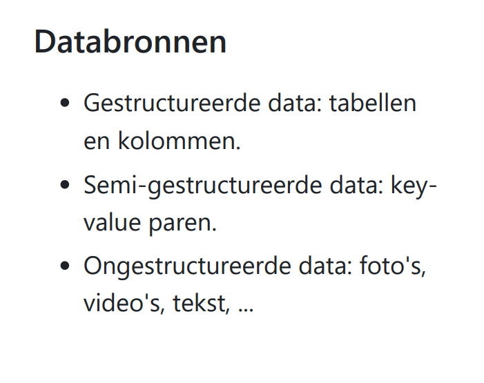 wat voor soort bronnen heb je bij gestructureerde, semi-, en ongestructureerde data