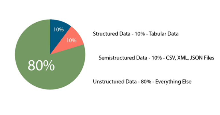 ongeveer hoeveel procent is gestructureerde, semi-, en ongestructureerde data