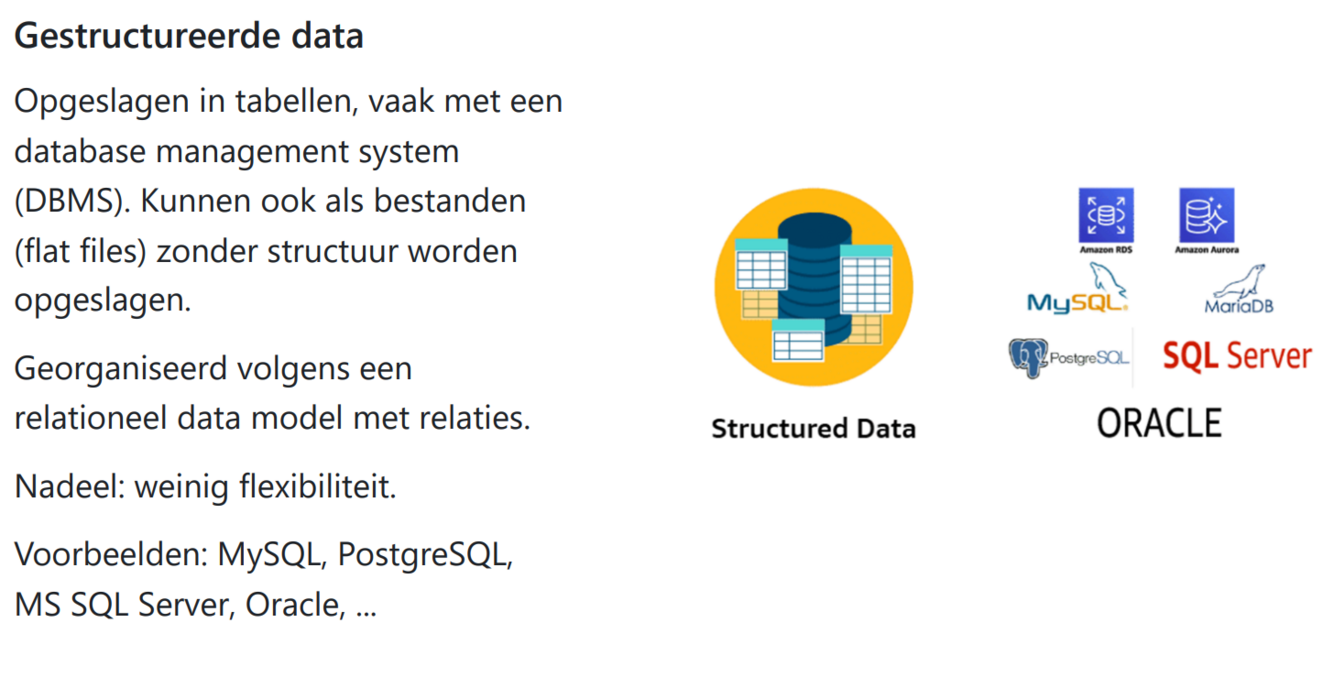 leg gestructureerde data uit + nadeel + voorbeelden