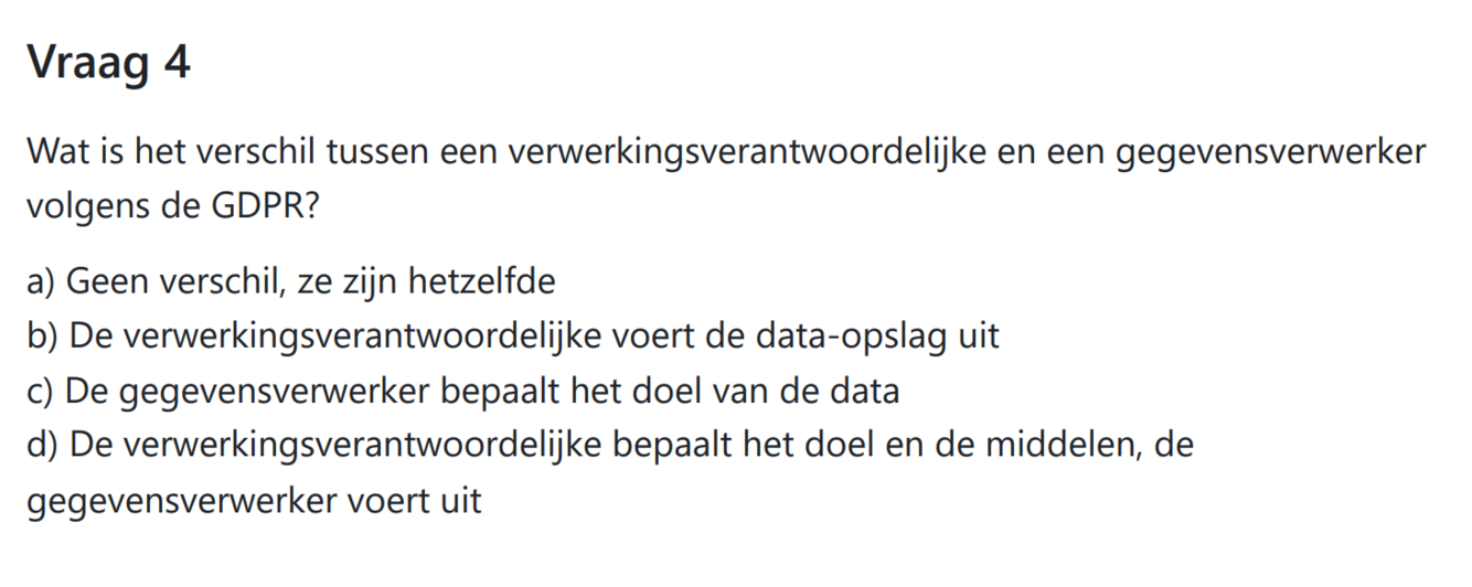 in dit voorbeeld wie is de verwerkingsverantwoordelijke en de gegevensverwerker