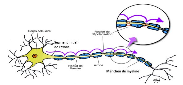 Donner un exemple dans lequel la gaine de myéline joue un rôle