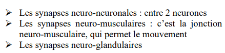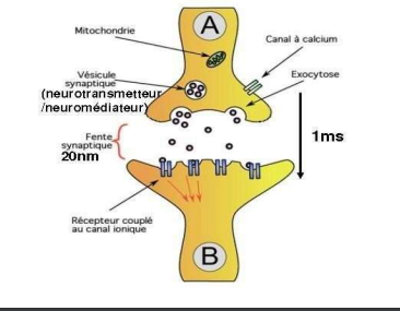 C’est la zone de transmission de l’information entre le bouton terminal d’un neurone et une autre cellule