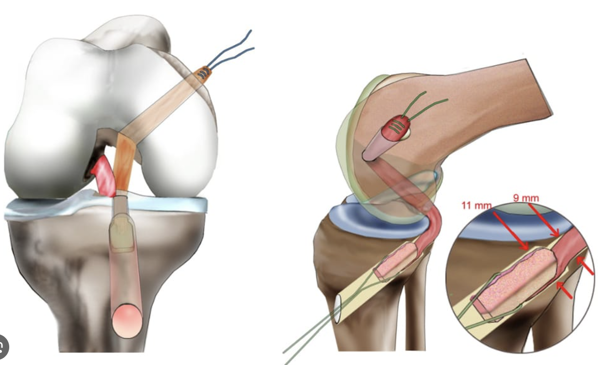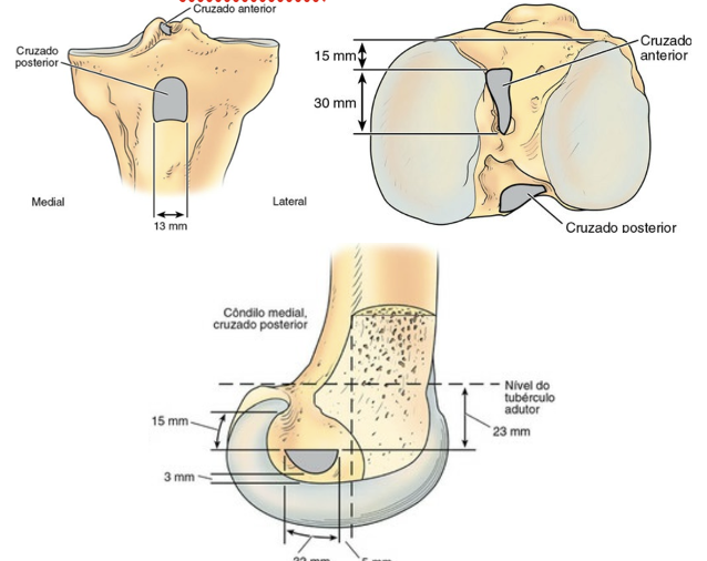 Origina-se do côndilo femoral medial e se insere numa depressão posterior à superfície intra-articular da tíbia.