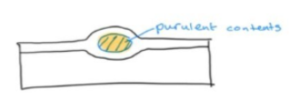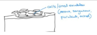 A dried exudate on the skin surface, either serum, blood or pus or a combination