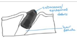 A dilated hair follicle devoid of hair and plugged with keratinous debris (a ‘blackhead’)