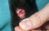 A break in the continuity of the epidermis that penetrates the basement membrane