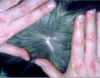 An accumulation of keratinous debris around the hair shaft seen protruding from trhe follicular ostium or present when hairs are plucked and examined
