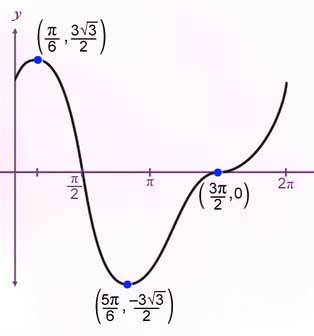 Find the points on f(x)=2cosx + sin2x on the interval (0,2π) which have horizontal tangents.