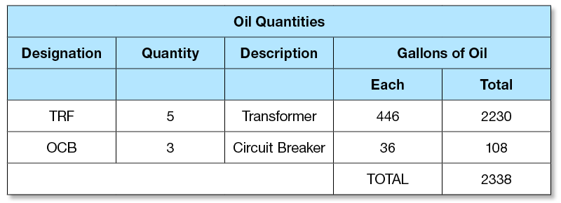Reference: Substation Construction—Spill Prevention, Containment, and Countermeasure Plans, “Containment,” Paragraph 2, Chart
