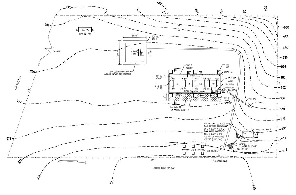 Reference: Substation Construction—Spill Prevention, Containment, and Countermeasure Plans, “Containment,” Paragraph 1, Diagram, “Oil Spill Containment Plan”
