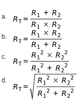 Select the “Product over Sum” formula for determining total resistance in parallel circuits containing two unequal resistances.