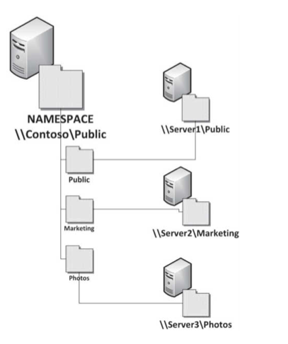 enables you to group shared folders into a single logical structure. In other words, a DFS Namespace is a shared folder of shared folders (which can be on multiple servers).
