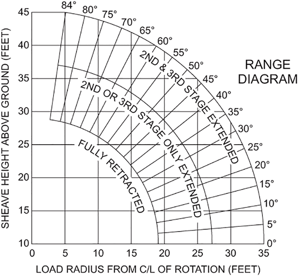 Reference: Boom Capacities and Load Charts, “Load Chart Information,” Range Diagram