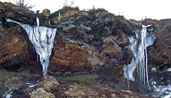 Downward narrowing masses of ice, between 2-3m wide at the base and extend below the ground surface up to 10m