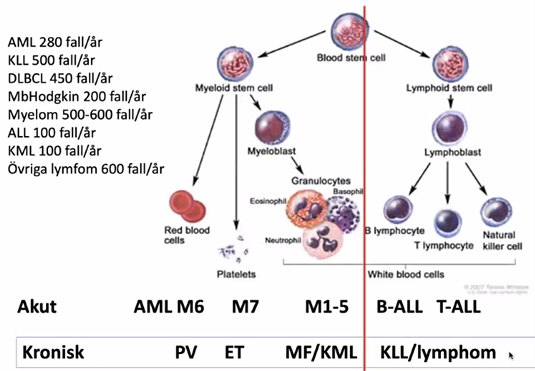 Vanligaste leukemiformen hos vuxna och vanligast bland äldre män? (500 fall/år)